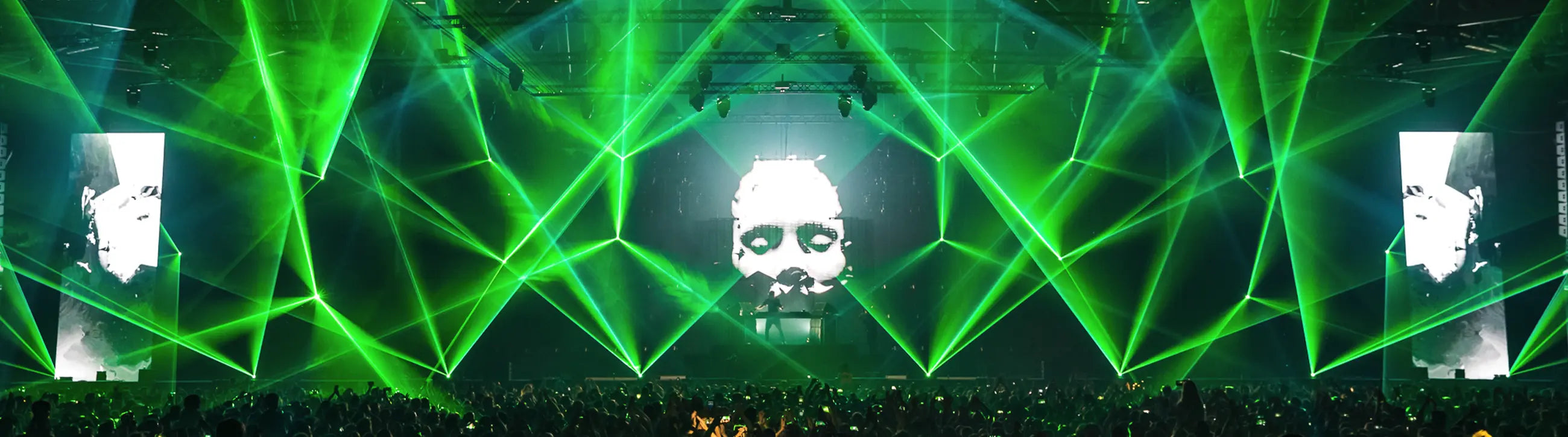 Lasers have become one of the primary special effects at major music, EDM, and multi-genre festivals. Events such as EDC, Tomorrowland, Coachella, and Lollapalooza rely on them to create high-impact, energizing visual moments that no other effect can match. From sweeping aerial beams to massive crowd-filling looks, lasers help define the atmosphere of modern festivals.
