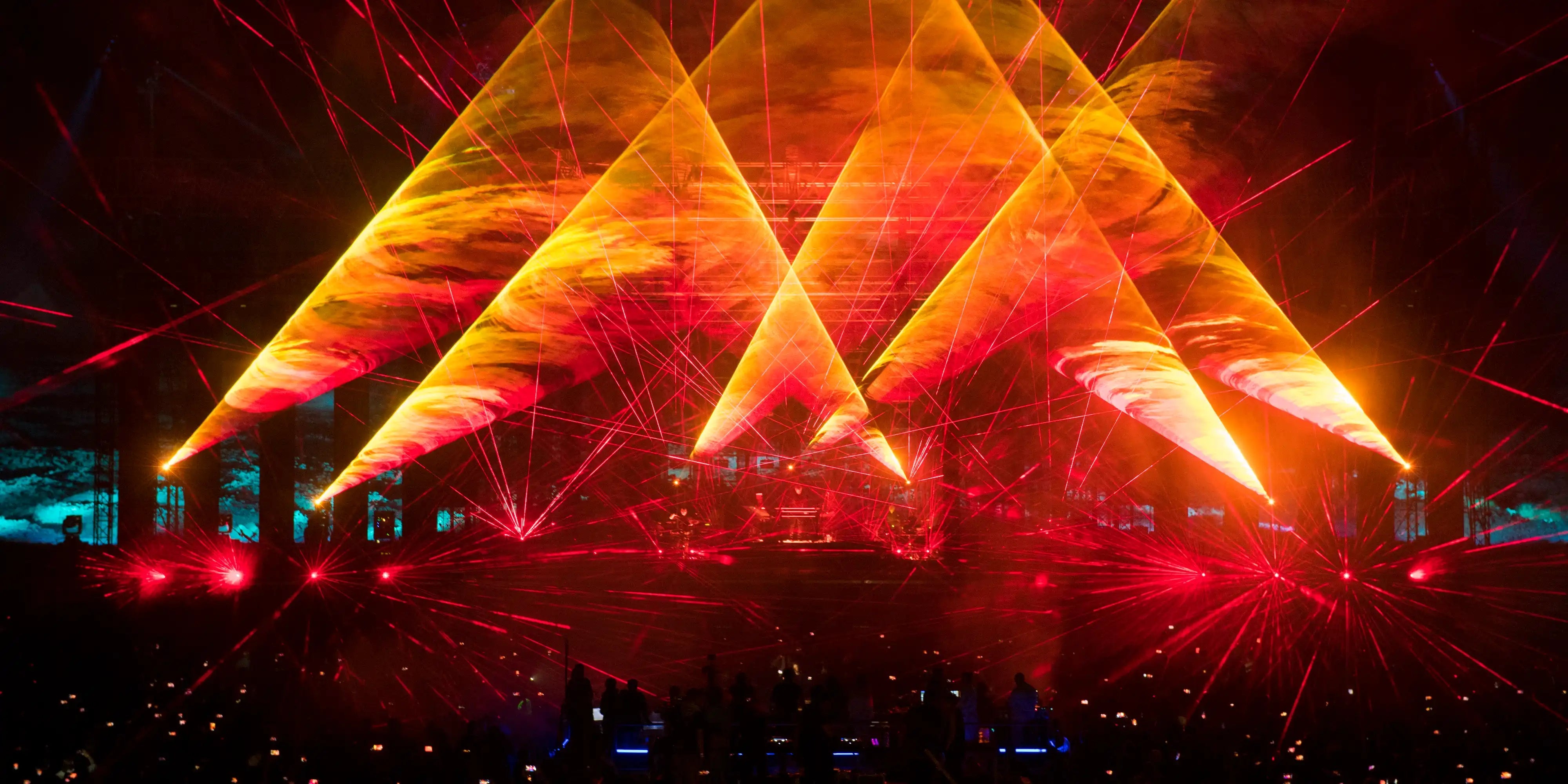 It’s all in the name! An outdoor laser show is any type of laser show that is being performed outdoors, this usually means the lasers will be projecting aerial beam effects or graphics over a long distance, like you might have seen at a concert or show before.