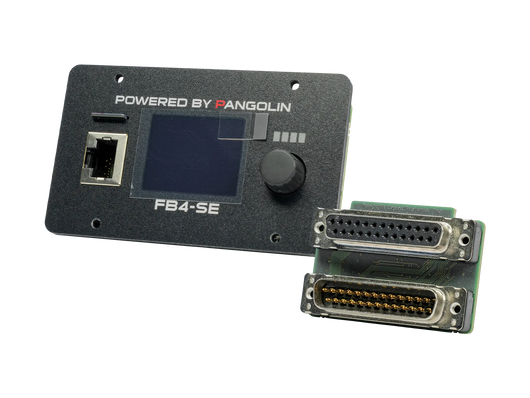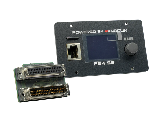 The FB4 ILDA product you see here features the FB4 main board, custom network/ArtNet port, SD card memory  (for automatic show playback) and the full color OLED display (for control over a variety of projector parameters, including colors, geometric correction, safety and more). It also includes our proprietary ILDA-in and ILDA-through daughterboard, if ILDA support is required.