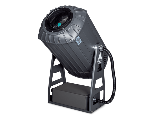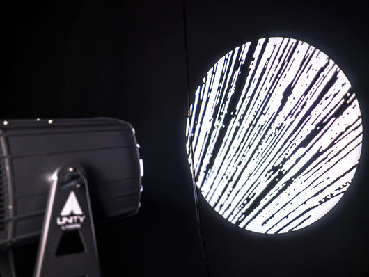 The Unity GOBO 600 is a 600-watt LED Gobo projector that offers all the features of modern professional gobos, including effects such as Zoom, Prism, Focus, Strobe and Dimmer. Its robust constriction made to IP65 standards allows it to be used in rainy conditions without worry.